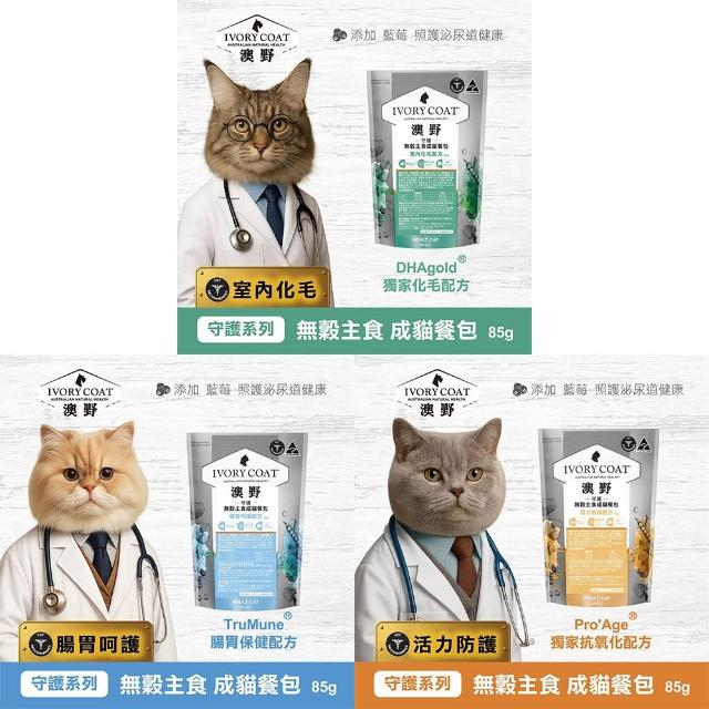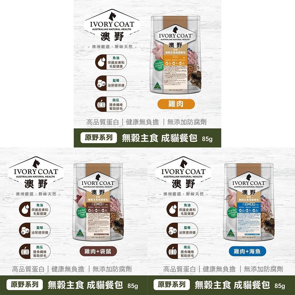 IVORY COAT 澳野貓主食餐包 無穀主食餐包 機能保健 高肉量 守護無穀 原野無穀 85g 成貓主食餐包 福媽寵物