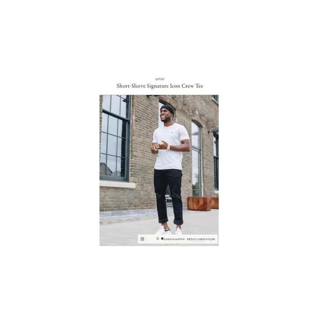 全新正品 A&F 經典刺繡標誌圓領短T AF麋鹿Logo彈性短袖上衣 T shirt T恤男士 白色
