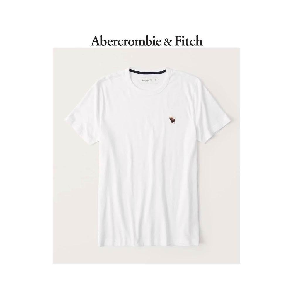 全新正品 A&F 經典刺繡標誌圓領短T AF麋鹿Logo彈性短袖上衣 T shirt T恤男士 白色