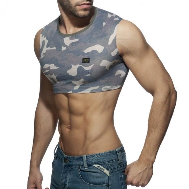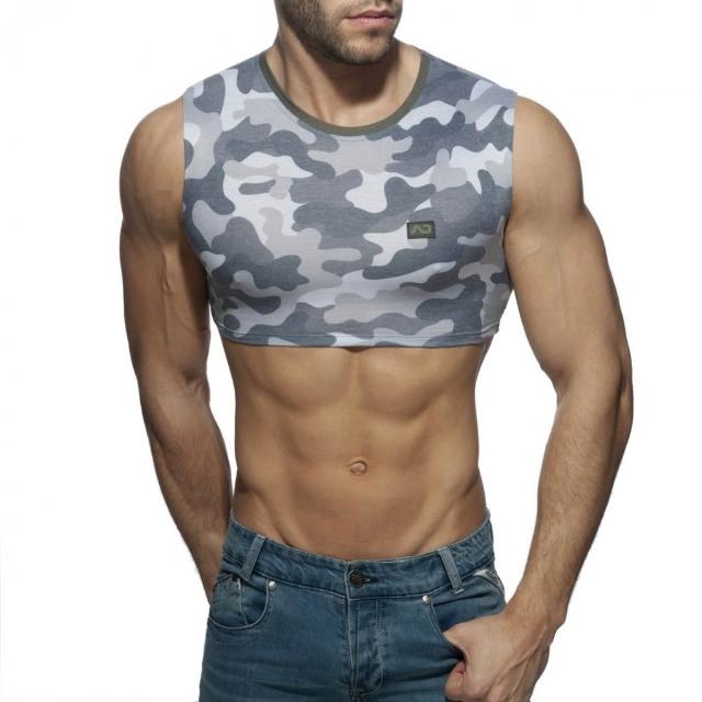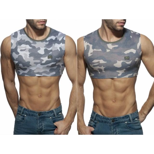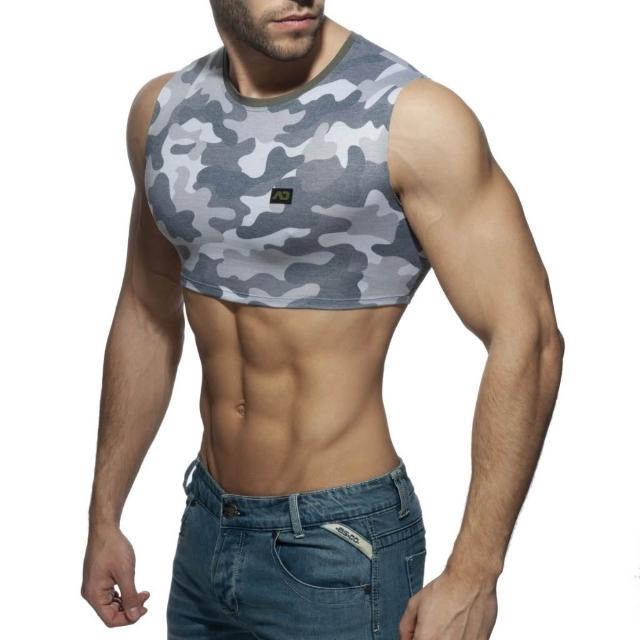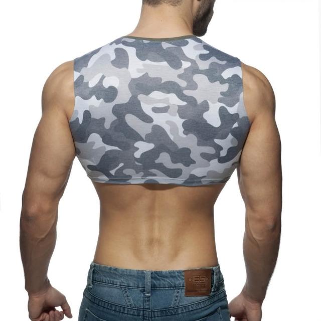 ADDICTED 迷彩半截式背心 AD運動健身上衣 露肚臍 軍裝迷彩印花 派對必備 AD869