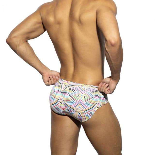 ADDICTED 多彩條紋迷幻三角泳褲 AD絢爛華麗運動泳裝 游泳日曬海灘褲 AD2315