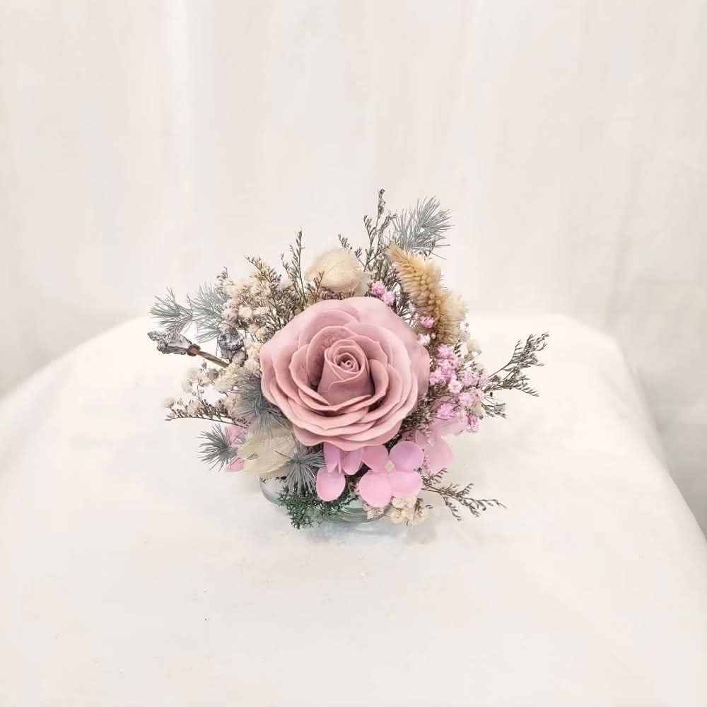 The Flower 嬪嬪花藝坊玫瑰香皂花盆花 莫蘭迪粉(買花送花/店長手工製作/全台宅配)