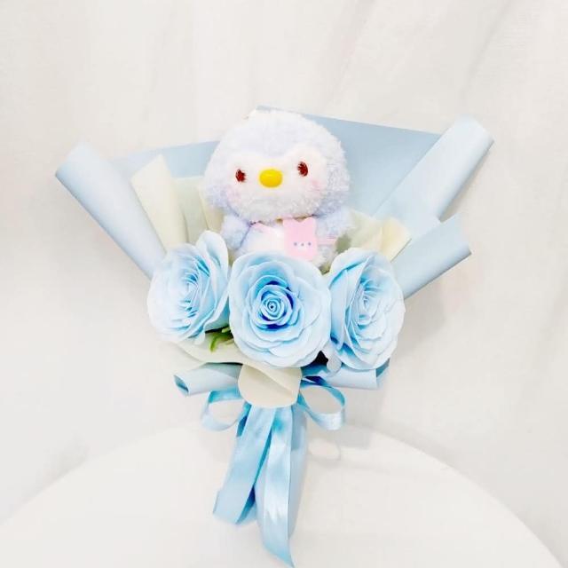 The Flower 嬪嬪花藝坊玩偶花束-藍色小企鵝(最特別的花禮/玩偶花束/全台宅配)