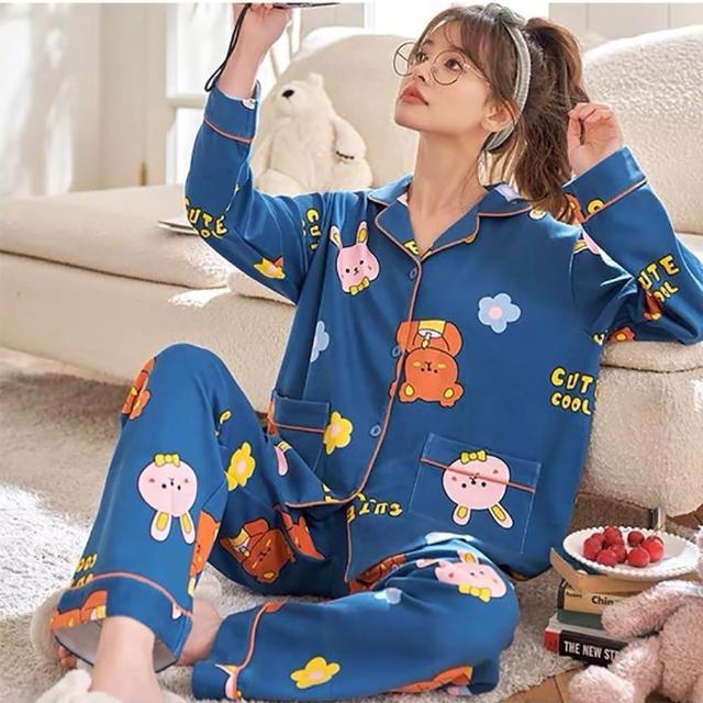 Annita現貨前開扣式 棉質寬鬆居家服睡衣共14款可選(兩件式套裝/連身睡衣/居家服/長袖/可當哺乳睡衣)