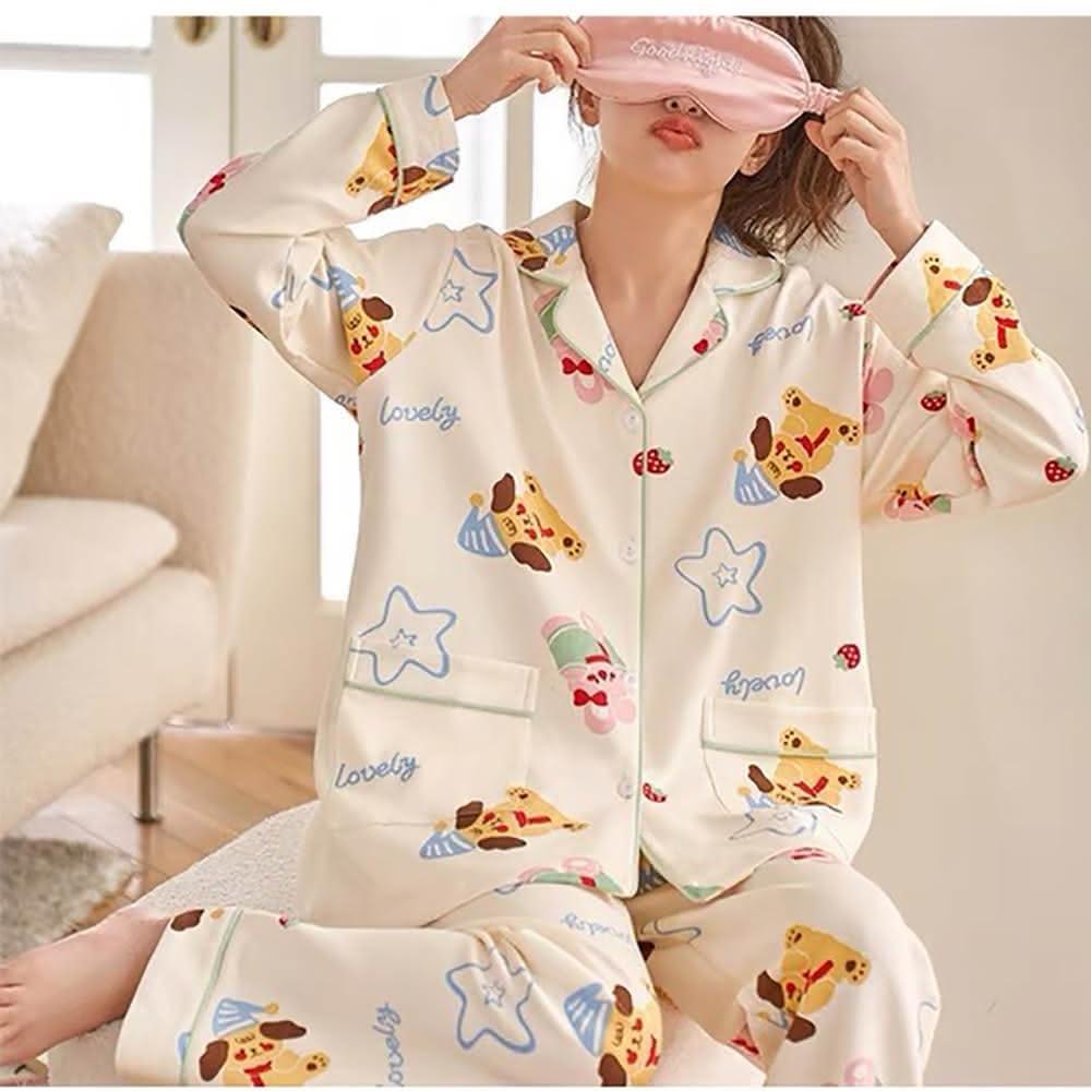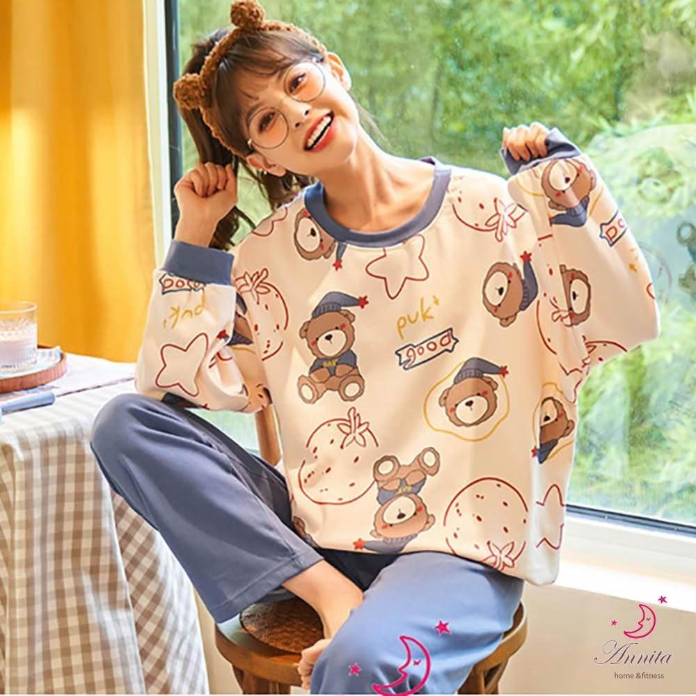 Annita現貨前開扣式 棉質寬鬆居家服睡衣共14款可選(兩件式套裝/連身睡衣/居家服/長袖/可當哺乳睡衣)