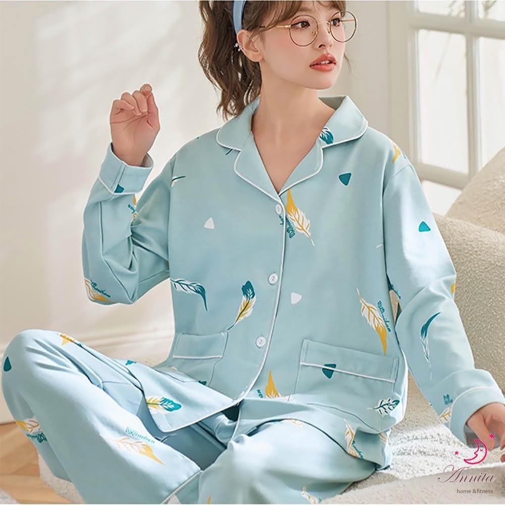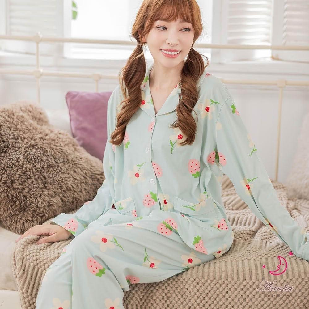 Annita現貨前開扣式 棉質寬鬆居家服睡衣共14款可選(兩件式套裝/連身睡衣/居家服/長袖/可當哺乳睡衣)