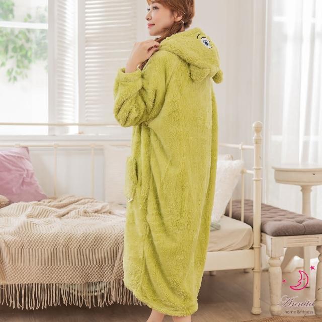 Annita大眼娃娃 法蘭絨珊瑚絨保暖睡袍居家服情侶款睡袍/酒店式浴袍睡袍/保暖居家服/長袖/中大尺碼