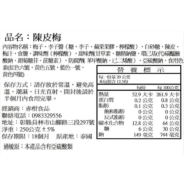 赤柑食品陳皮梅 250g(蜜餞 果乾 泰國 古早味 零食 茶點 李子)