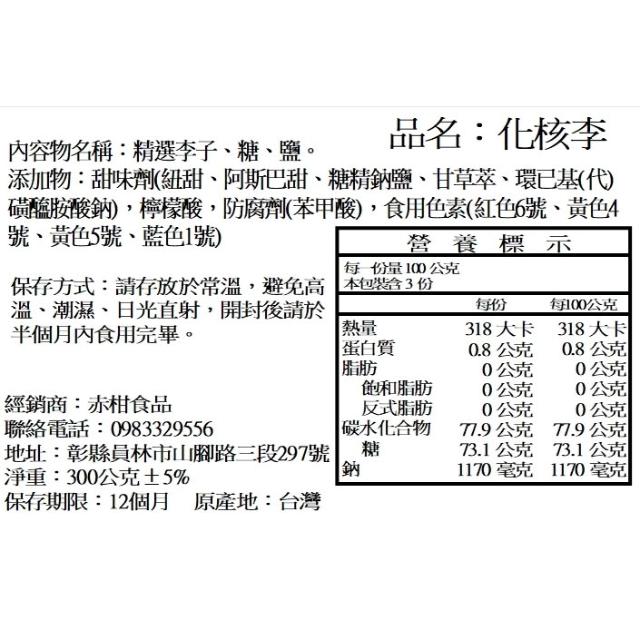 赤柑食品化核李 300g(蜜餞 果乾 無籽 無籽李 古早味 李子)