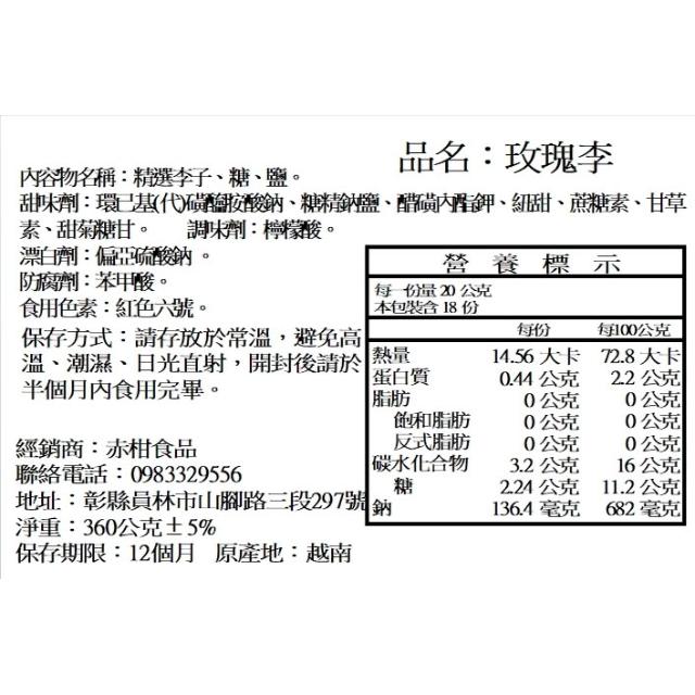 赤柑食品玫瑰李 360g(蜜餞 果乾 玫瑰 李子 古早味 有籽)