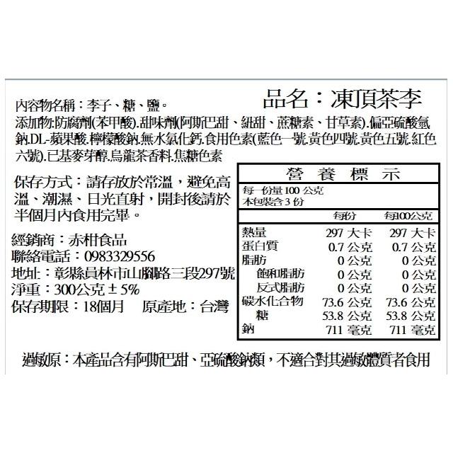 赤柑食品凍頂茶李 300g(蜜餞 果乾 李子 凍頂茶 台灣製造 古早味)