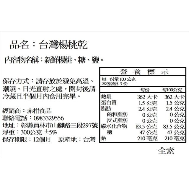 赤柑食品台灣楊桃乾300克(正統台灣製造 無防腐劑 無添加人工色素 果乾 蜜餞 楊桃 零食)
