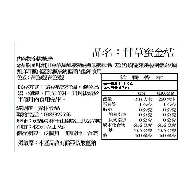 赤柑食品甘草蜜金桔 420g (蜜餞 果乾 蜜金桔 古早味 小金桔 熱銷爆款)