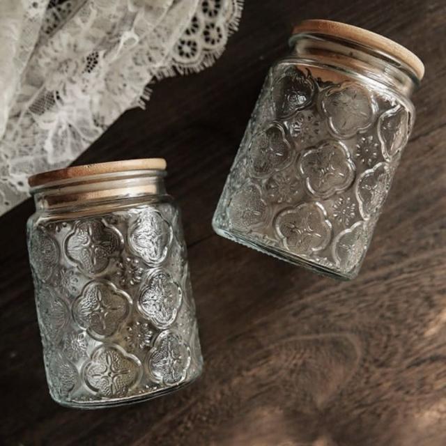 海棠壓花玻璃罐 700mL儲物罐 密封罐 玻璃密封罐 糖果罐 復古玻璃罐 儲物罐(儲放雜糧果乾 復古海棠壓花)