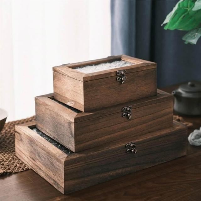 海棠壓花玻璃收納盒 桌上收納盒 木盒 飾品盒 首飾盒 置物盒 小物收納盒(復古窗花 收納盒)