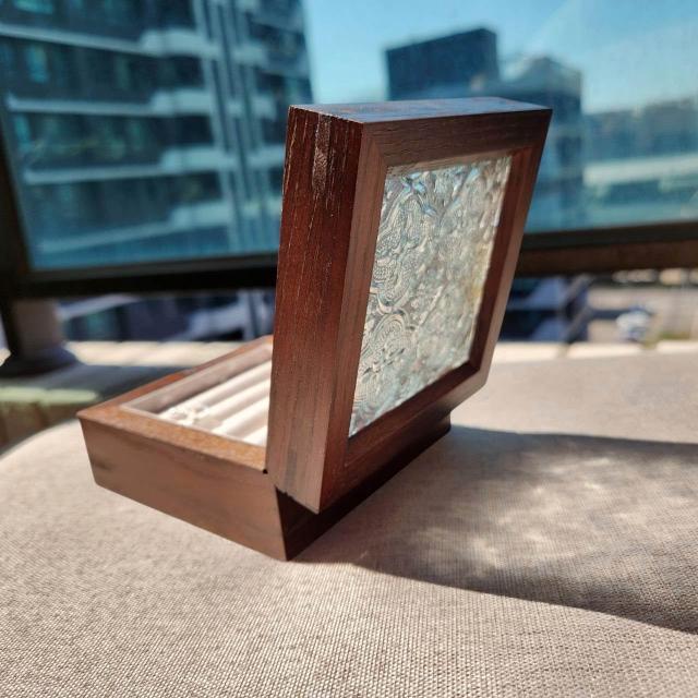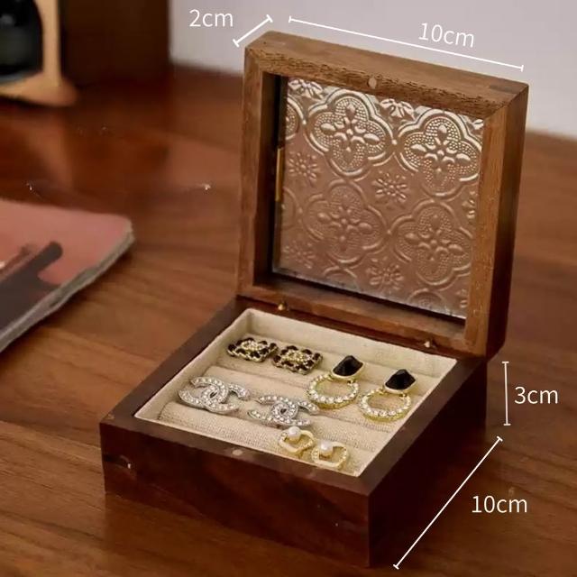 復古海棠壓花玻璃戒指盒 戒指盒 耳環收納盒 飾品收納盒 戒指收納盒 戒指收納 耳環收納
