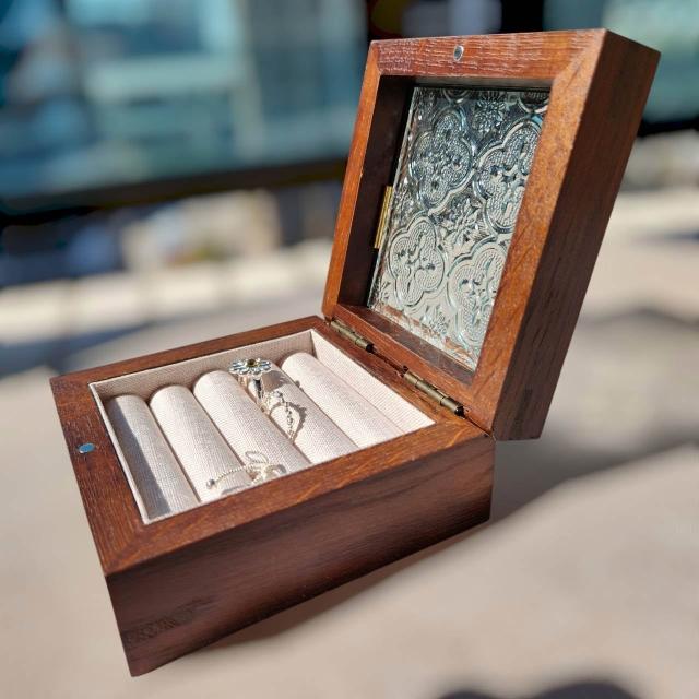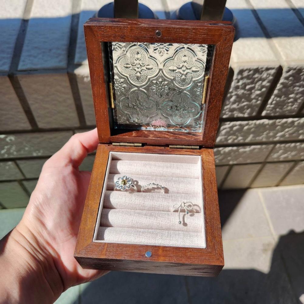 復古海棠壓花玻璃戒指盒 戒指盒 耳環收納盒 飾品收納盒 戒指收納盒 戒指收納 耳環收納