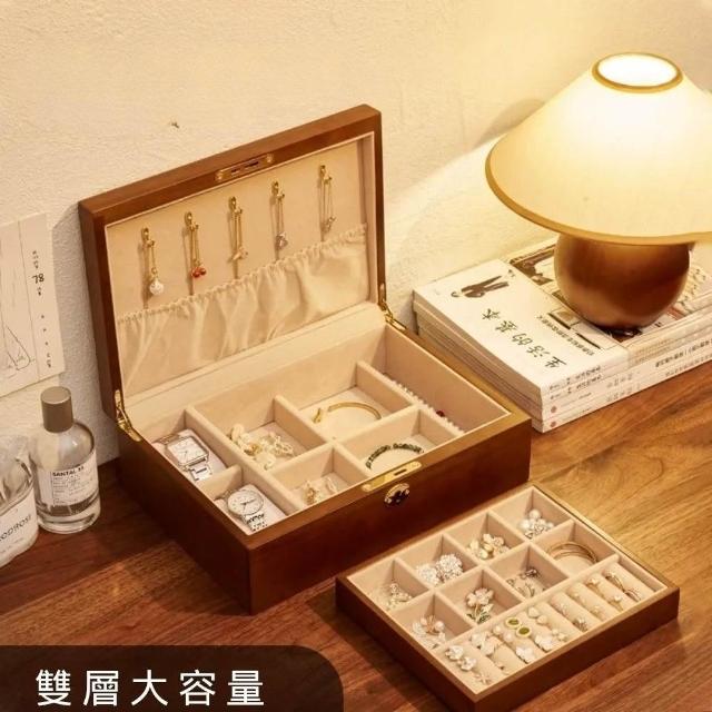 中式復古飾品盒 可上鎖設計 高級感木質飾品盒 飾品收納盒 首飾盒 珠寶盒 耳環收納盒 戒指收納盒