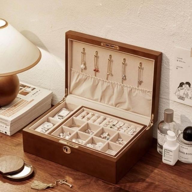 中式復古飾品盒 可上鎖設計 高級感木質飾品盒 飾品收納盒 首飾盒 珠寶盒 耳環收納盒 戒指收納盒