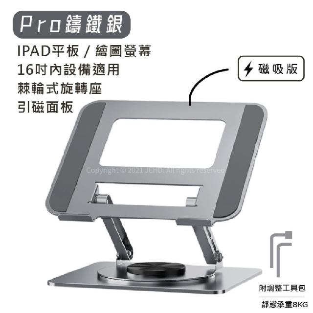 JEHDPro款 磁吸 棘輪旋轉支架 雙軸支撐 平板 繪圖板 適用 超級穩 鑄鐵折疊適用Air Pro 10.9 11 12.9 13 14.6吋平板