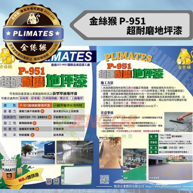 金絲猴P-951 超硬耐磨地坪漆 超取限一加(加侖裝 地坪材料 適用停車場 廠房地坪)