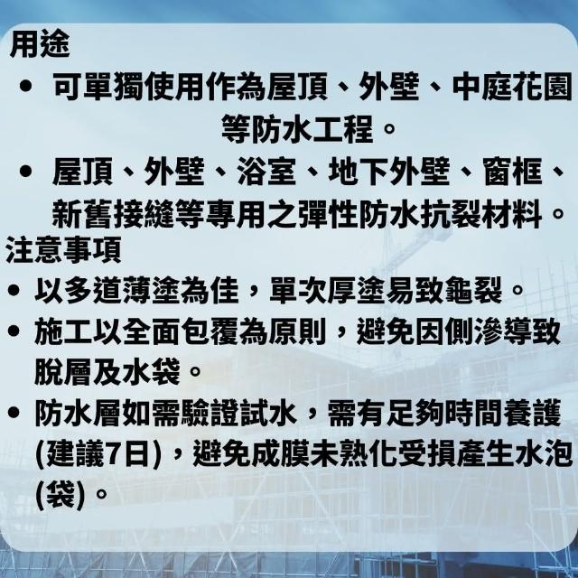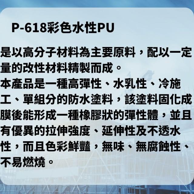 金絲猴P-618彩色水性PU 五加侖裝(水性無毒單液、潮濕面可施工。 高伸長率、超強耐浸水能力。)