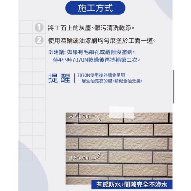 雨漏熱 7070N 水性透明防水材 5加侖裝 水性彈性透明防水漆 / 外壁專用 / 瓷磚 / 洗石壁面 防水材