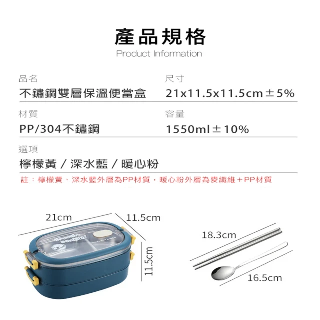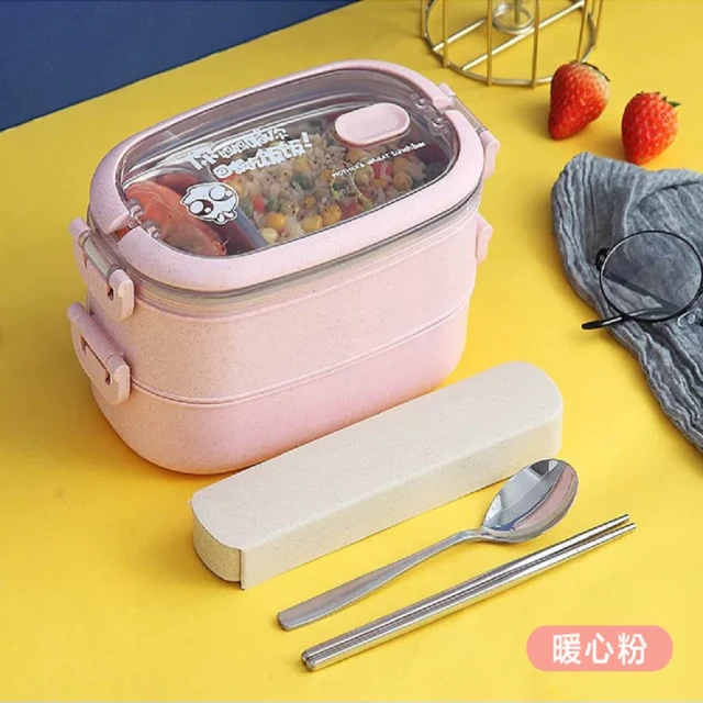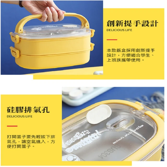 CGW不鏽鋼便當盒雙層附餐具組(餐盒 雙層便當盒 保鮮盒)