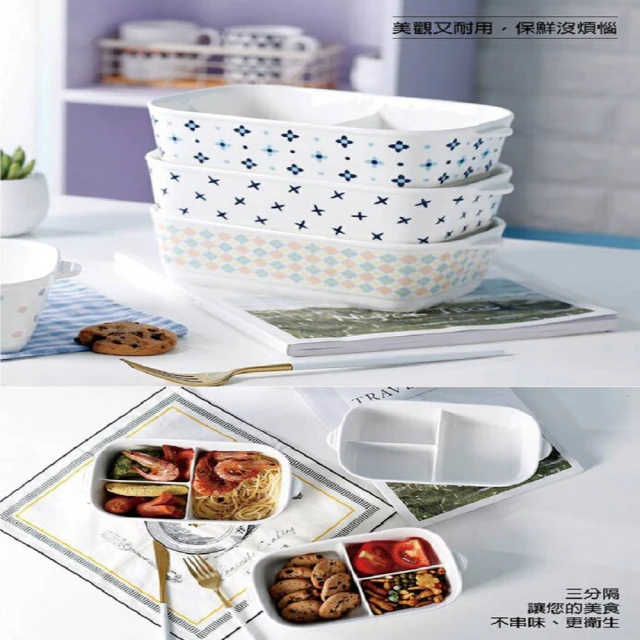 CGW陶瓷便當盒可微波保鮮盒(三分格保鮮餐盒/陶瓷餐盒/保鮮盒//分隔餐盒)