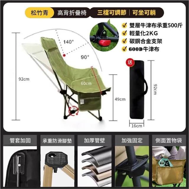 免安裝戶外折疊椅露營月亮椅高背款(附收納袋露營摺疊椅 摺疊椅 戶外折疊椅 釣魚椅)