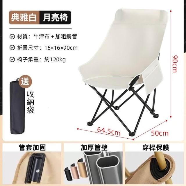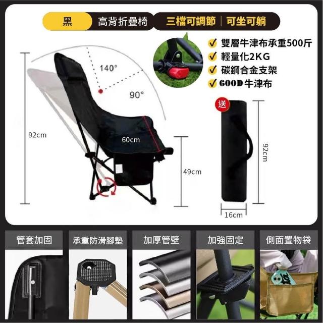 免安裝戶外折疊椅露營月亮椅高背款(附收納袋露營摺疊椅 摺疊椅 戶外折疊椅 釣魚椅)
