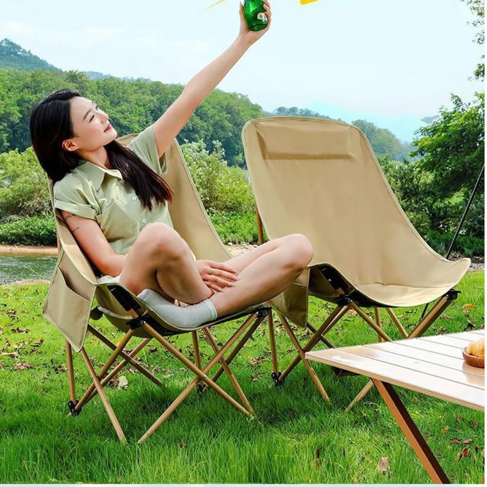 免安裝戶外折疊椅露營月亮椅高背款(附收納袋露營摺疊椅 摺疊椅 戶外折疊椅 釣魚椅)