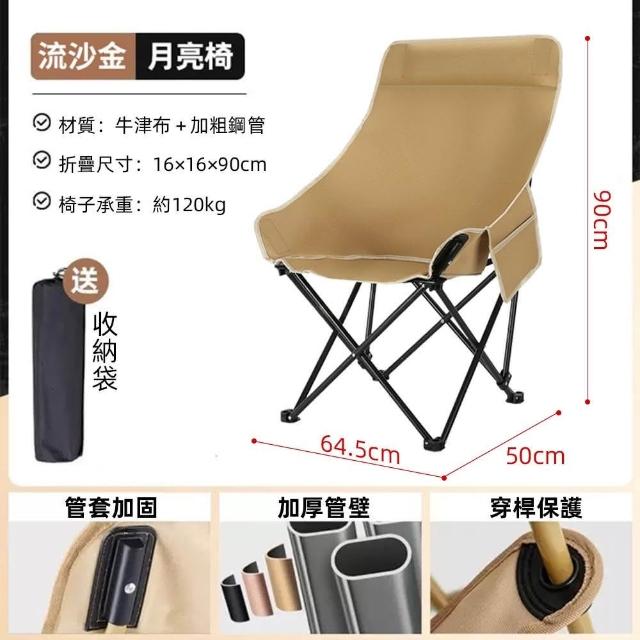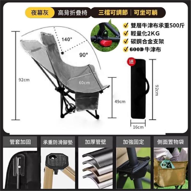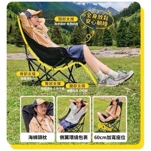 免安裝戶外折疊椅露營月亮椅高背款(附收納袋露營摺疊椅 摺疊椅 戶外折疊椅 釣魚椅)