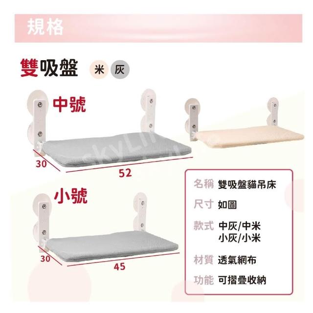 SKYLIFE貓吊床 小號 寵物吸盤掛床 貓窩 寵物床 貓爬架 貓吊床小號長45x30 免打孔無痕安裝 曬太陽神器