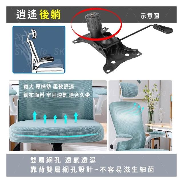 SKYLIFESGS認證 乳膠辦公椅 黑色電腦椅 透氣網布椅 人體工學後躺頭枕IK61可後躺有頭枕