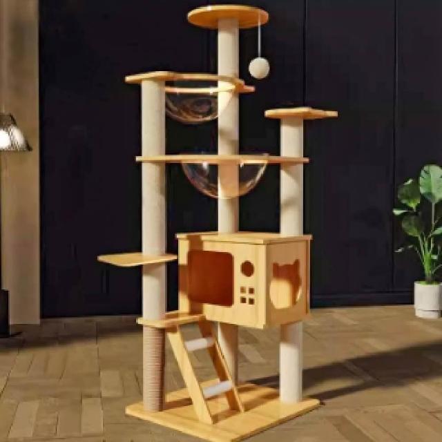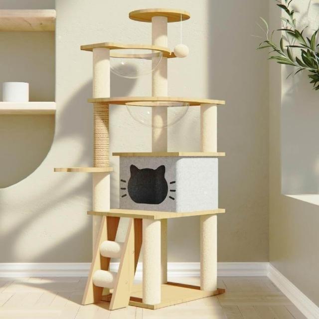 SKYLIFE免運!!多款造型 原木紋貓跳台 跳台 貓抓板 貓咪別墅互動透明太空艙 寵物專用130CM~150CM