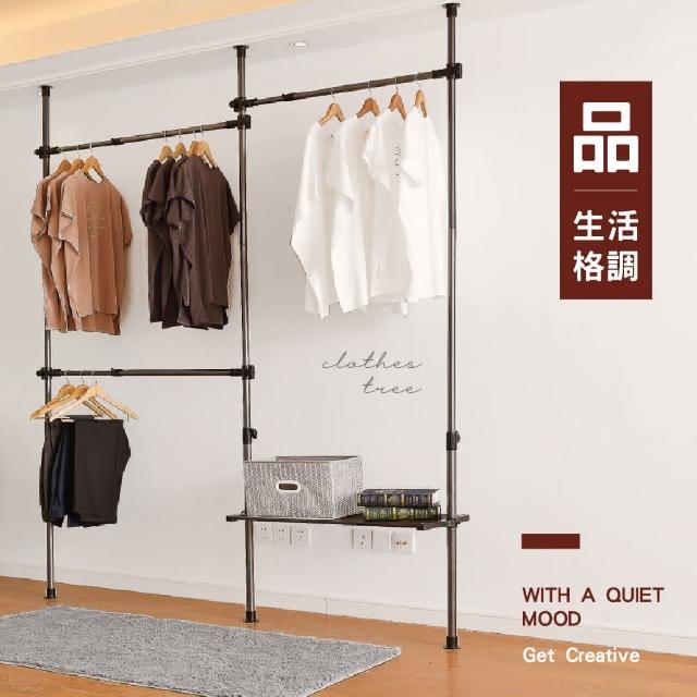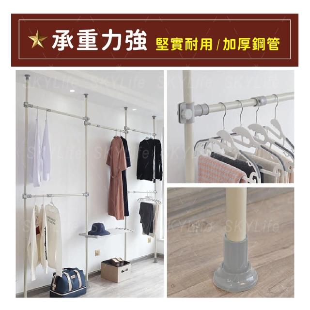 SKYLIFE簡約版頂天立地 三橫三豎+層架款 加粗鋼管穩固耐重 吊衣架 高衣架