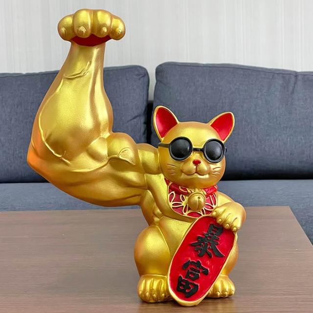 麒麟臂劫財貓 聚寶盆 招財貓 肌肉招財貓 擺飾 擺件麒麟臂招財貓聚寶盆
