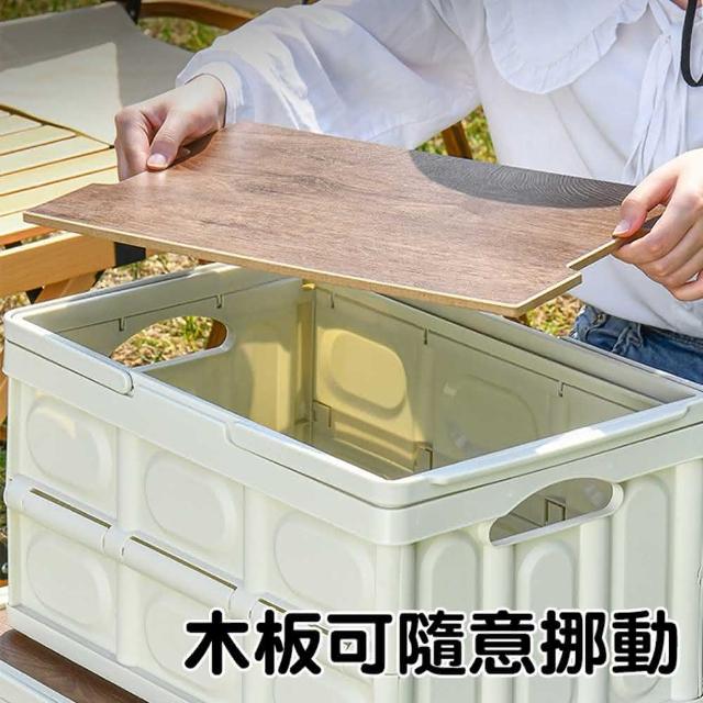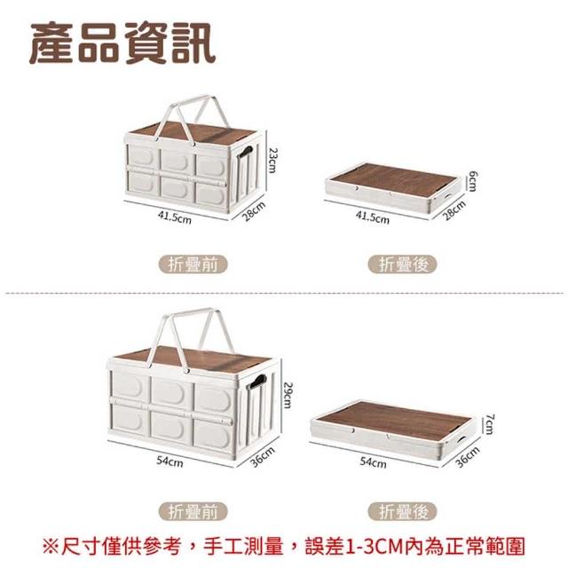 手提露營摺疊箱 木蓋折疊箱 收納箱 野餐提籃 儲物箱 露營箱 折疊收納箱 手提折疊箱 戶外收納箱 露營用品(大號55L)