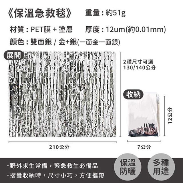 救生毯 急救毯 求生毯 保暖 保溫 急救 求生用品 應急毯 毯子 鋁箔毯 救援毯 登山 爬山 露營(130x210 雙面銀)