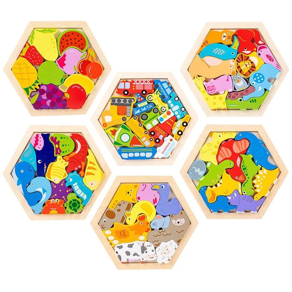 木製六角拼圖 造型拼圖 兒童拼圖 益智玩具 3D立體拼圖 積木 手抓板 疊疊樂 兒童禮物 學習拼圖 認知拼圖