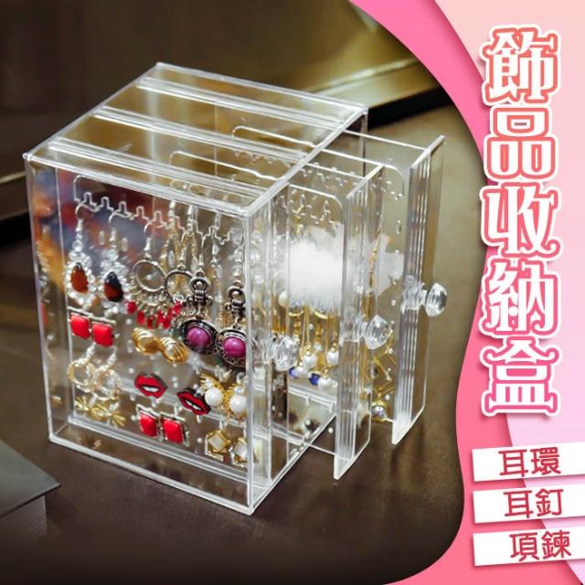 透明飾品收納盒 耳環展示盒 耳釘 項鍊 飾品 儲物盒 桌面收納 壓克力盒 收納盒 防塵 美觀 簡約