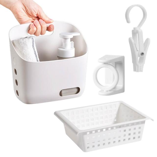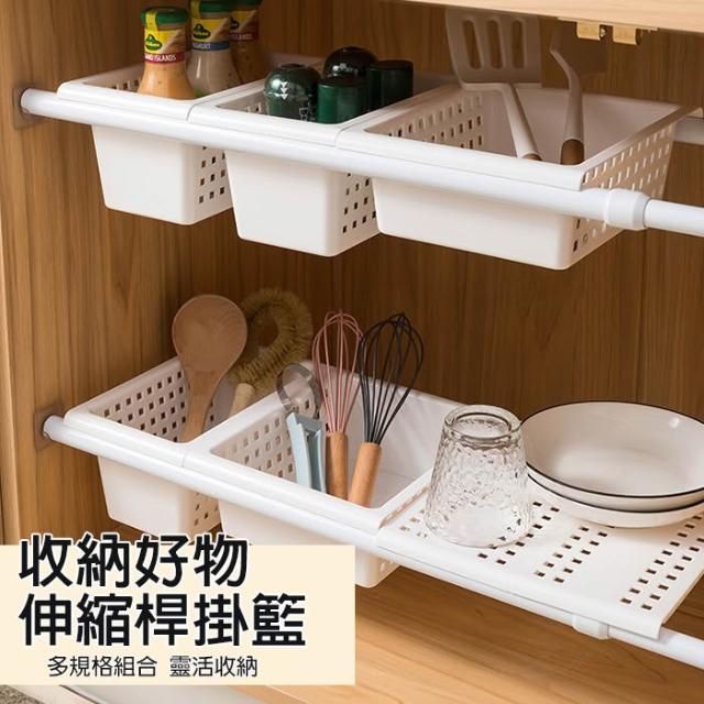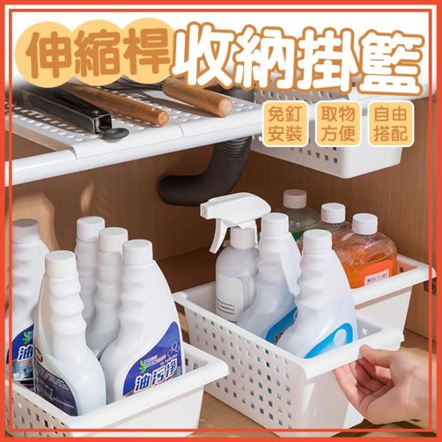 伸縮桿收納掛籃 水槽置物架 儲物盒 儲物籃 雜物籃 廚房收納架 免打孔伸縮桿 收納架 浴簾桿 窗簾桿 門簾桿