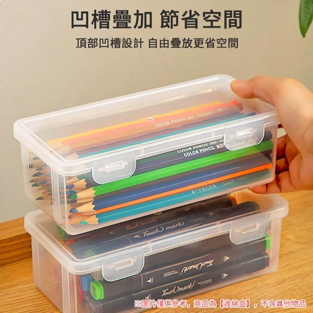透明文具收納盒 鉛筆收納盒 鉛筆盒 透明塑膠盒 卡扣收納盒 帶蓋收納盒 可疊加鉛筆盒 桌面收納盒 文具盒