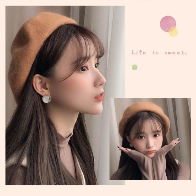 加厚立體蓓蕾帽 羊毛呢貝蕾帽 畫家帽 復古英倫 貝蕾帽 貝雷帽 毛帽 女帽 帽子