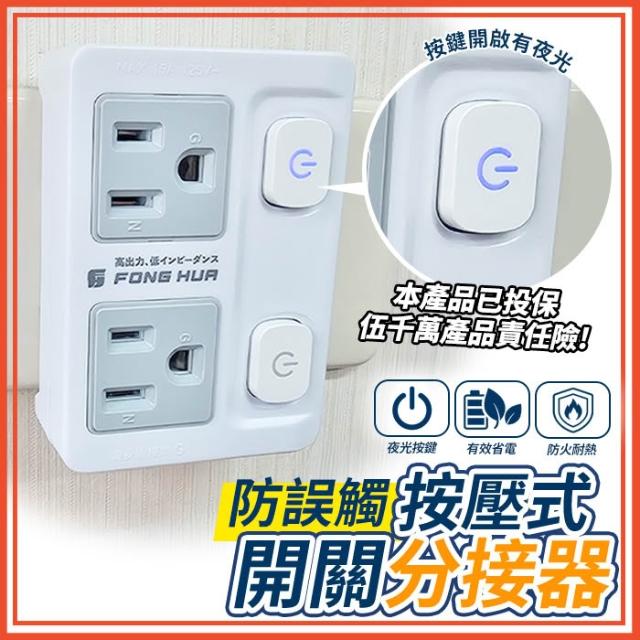 按壓式開關分接器 3轉2插座 獨立開關 防火耐熱 按壓開關 多孔插座 分接插座 延長座 萬用插座 壁插轉接頭
