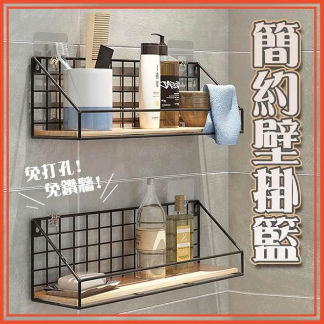 簡約壁掛籃 免打孔 牆上置物架 壁掛籃 收納籃 鐵籃 架子 層架 學生寢室 臥室 客廳 床頭 宿舍