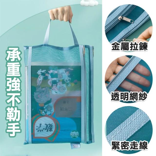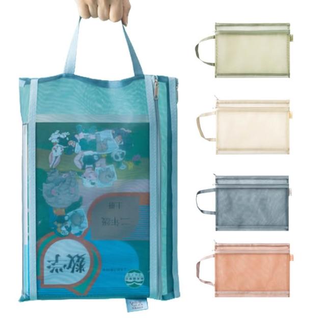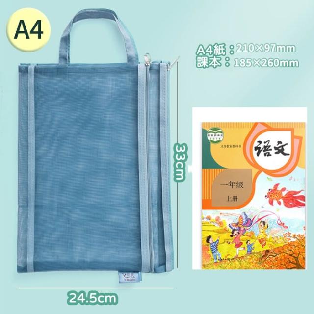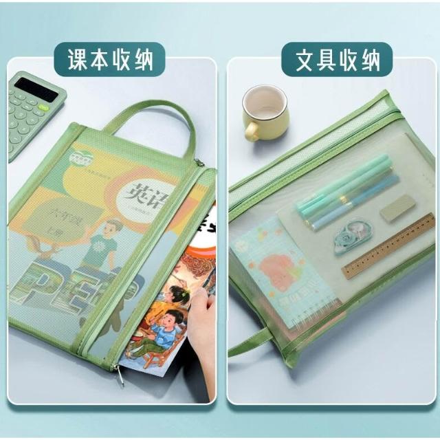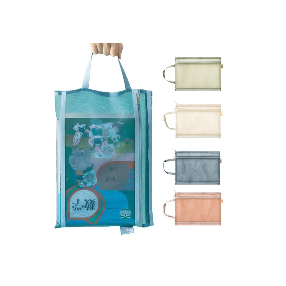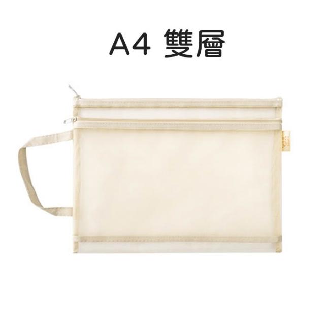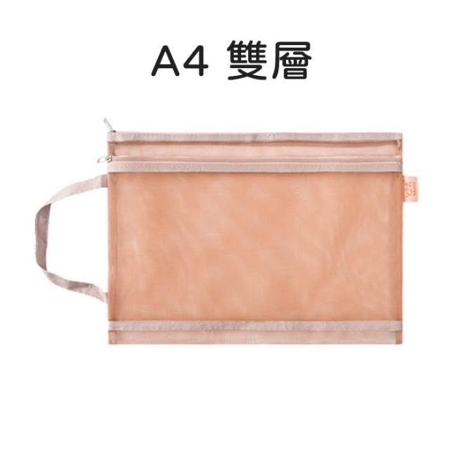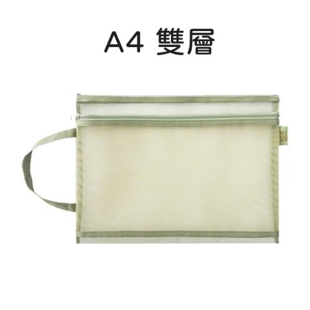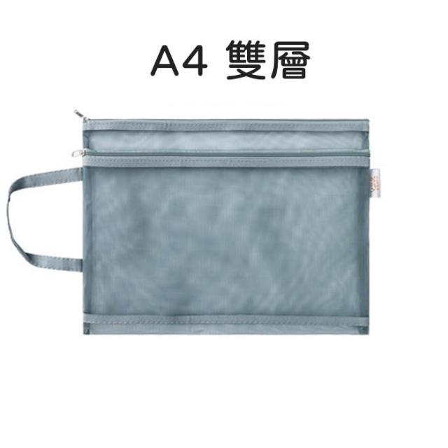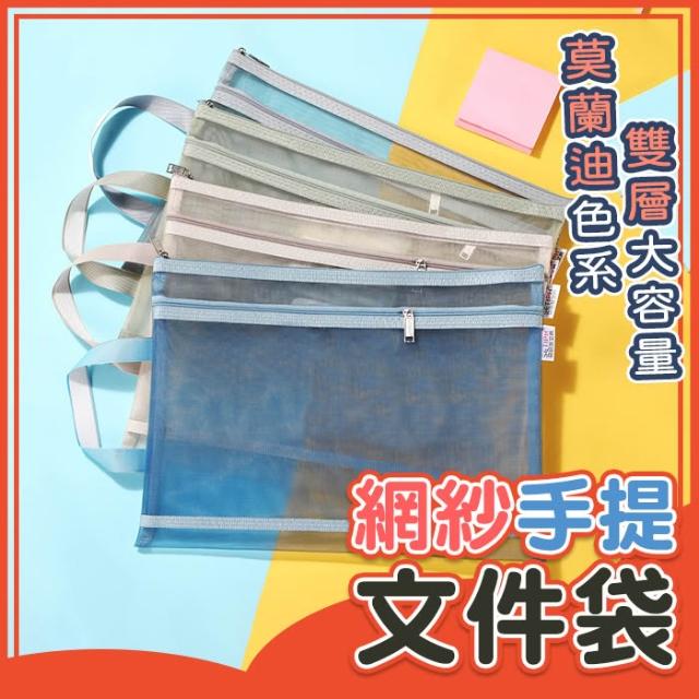 手提網紗文件袋 資料袋 莫蘭迪 雙層文件袋 手提文件袋 文具袋 收納 手提袋 學生 資料夾 A4