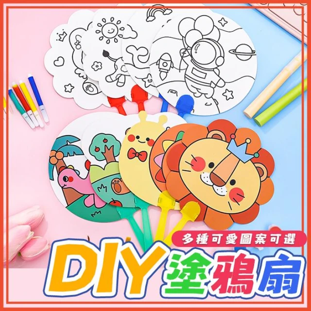 DIY扇子 塗鴉扇 彩繪 空白扇子 手作 繪畫 紙扇 美勞 畫畫扇子 卡通彩繪扇 塗鴉扇 兒童節 禮物