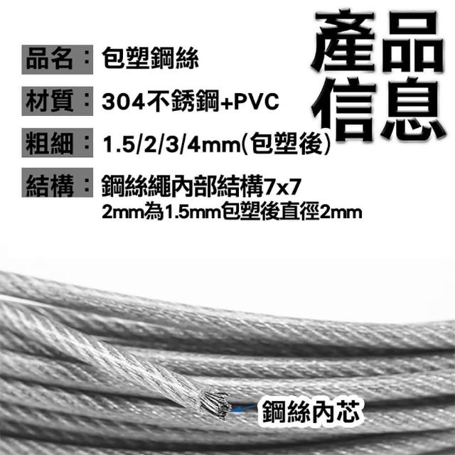 不銹鋼包塑鋼絲 300cm/條 線徑 2mm(不銹鋼鋼絲曬衣繩 加粗曬衣繩)